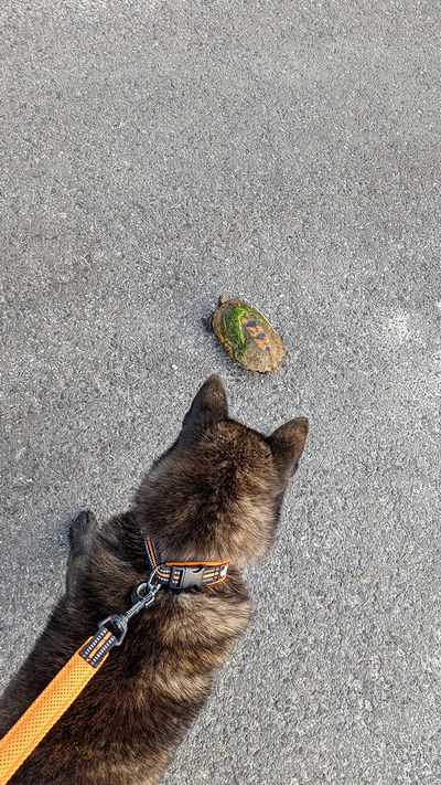 鹿すじ肉を乾燥させて桜のチップで燻しました!『鹿すじ肉の燻製(わんこ用)』できました^^。味見係のレン部長もご満悦🐾